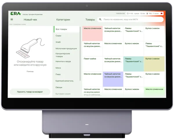 Функциональность: Поддерживает интеграцию с различными системами учета, позволяет подключать сканеры штрих-кодов, принтеры чеков и другие периферийные устройства.
